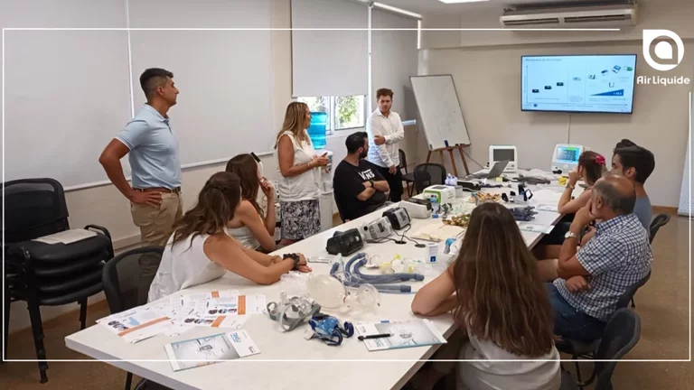 El pasado 9 de marzo, VitalAire Argentina llevó a cabo un taller dirigido a neumonólogos y kinesiólogos en la sucursal de la ciudad de Rosario, Santa Fe. El taller fue enfocado en resolver y despejar dudas en como interactúan las técnicas y tecnologías de ventilación mecánica y oxigenoterapia al momento de derivar pacientes a una internación domiciliaria. Además, durante el taller, se intercambiaron experiencias de cómo los tratamientos en el domicilio contribuyen no solo a mejorar el estado de ánimo del paciente sino también indicadores clínicos.